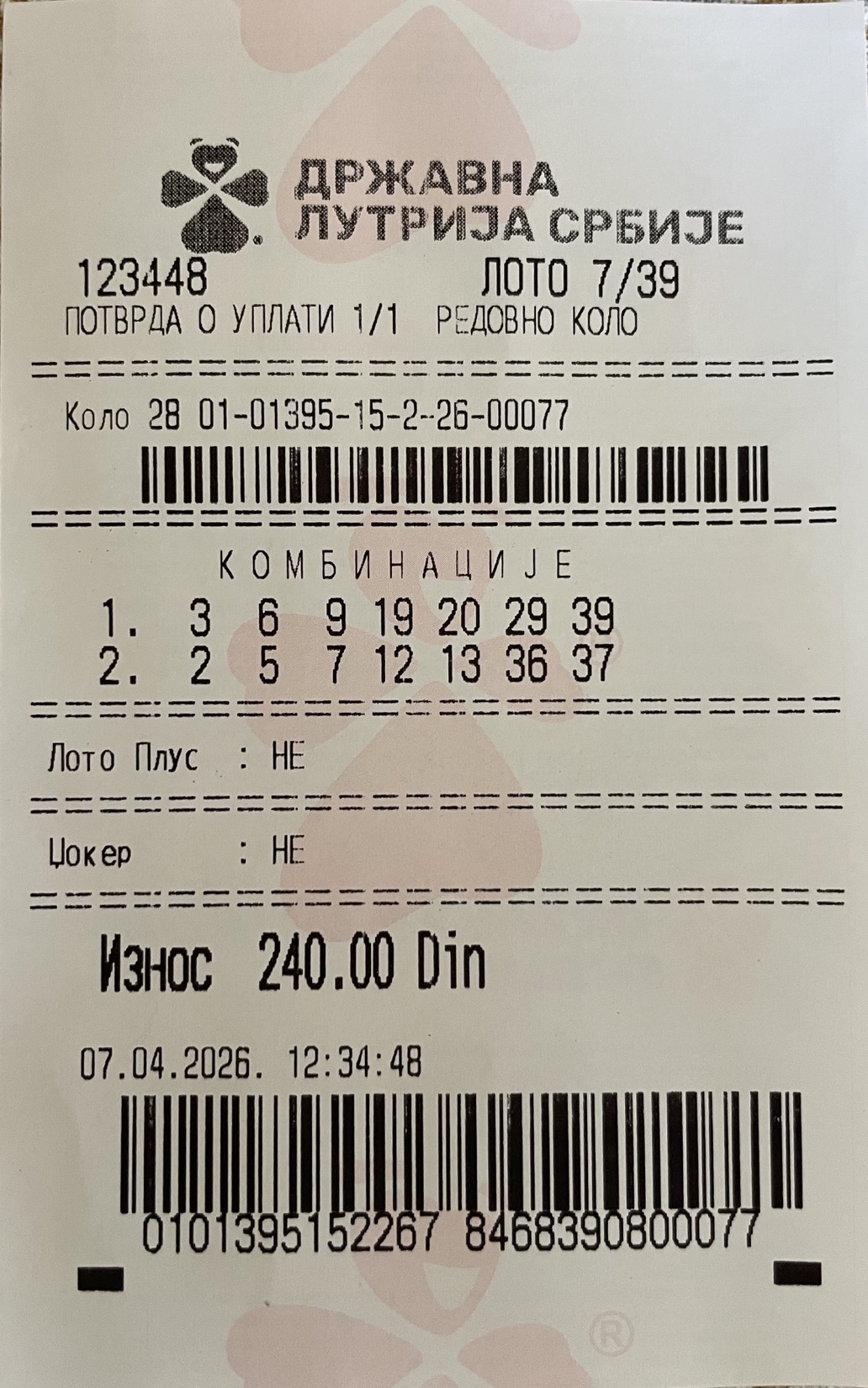 Prikazuje rezultate loto kola i omogućava proveru tiketa ručnim unosom ili preko fotografije potvrde.